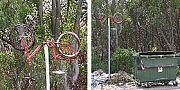 Qualche estroso inquinatore ha pensato bene di mettere in mostra i rifiuti accatastati vicino ad alcuni cassonetti