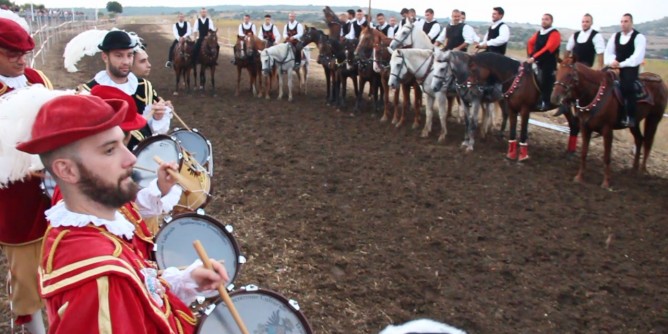 Emozioni, acrobazie e tanti applausi. Pubblico e cavalieri da tutta l’Isola per un evento che fino all’ultimo ha rischiato di essere rinviato a causa di un forte acquazzone. Salvataggio in extremis durante una discesa: figurante preso al volo dal compagno in sella