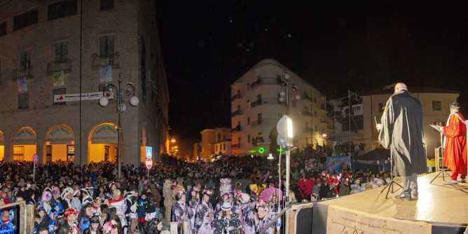La scommessa è stata ampiamente vinta: strutture alberghiere al completo, ristoranti impegnati con menù dedicati alla tradizione carnevalesca, quintali di frittelle preparate dai maestri frittellai, della Classe Sessantotto, che non hanno mai smesso di impastare e friggere. Ettolitri di moscato, musica, coriandoli ed allegria per condire uno spettacolo di altissimo livello, gestito egregiamente da tutte le forze in campo: dalla sicurezza, alla musica offerta dalla voce squillante di Domenico Dettori (autore con Giuseppe Anfossi del brano simbolo di questo carnevale “Glielo Incarto”), fino alle Carrascialine, guidate da Korin Podesva. Eccellente Alessandro Achenza, mattatore del Carnevale, direttore artistico dell'evento e perfetto nell'imbastire uno spettacolo che non ha mai perso il ritmo. Le battute finali, quelle dedicate allo storico ed atteso processo, hanno visto sul palco Il giudice (Achenza) l'avvocato della difesa (Fausto Pischedda) ed il Notaio (Giuseppe Anfossi), che nel tempo record di 8', hanno saputo sciorinare accuse, colpe e ultime volontà del Sovrano che, dopo qualche minuto è stato ridotto in cenere, mantenendo fede alla tradizione.
