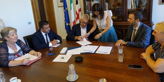 CAGLIARI - Anche la Sardegna entra a far parte dell'Assemblea delle Regioni d'Europa, la più grande rete indipendente di regioni in tutta l'Europa, che rappresenta 150 territori, con più di 270 componenti appartenenti a 33 Paesi e 16 organizzazioni interregionali. Ieri (mercoledì), il presidente della Regione autonoma della Sardegna Francesco Pigliaru, l'assessore regionale del Lavoro Virginia Mura ed il direttore generale dell'Aspal Massimo Temussi hanno siglato con i due rappresentanti dell’Assemblea, il francese Mathieu Mori e la spagnola Esther Estany Campos, l'adesione della Regione nell'organismo internazionale e la partecipazione a Eurodyssey, un programma di cooperazione interregionale sulla mobilità professionale, attivo dal 1985 e promosso dalla stessa Aer.