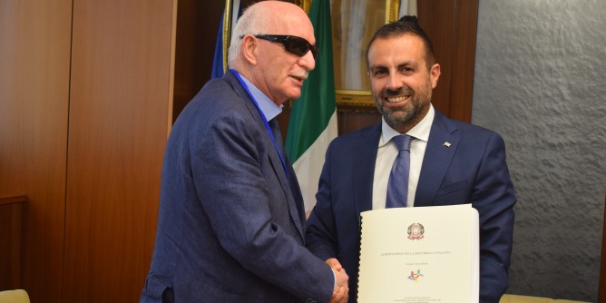 Dopo il Presidente della Repubblica e i Presidenti del Senato e della Camera una copia della Costituzione in Braille è stata consegnata, stamattina a Cagliari, al Presidente del Consiglio regionale Michele Pais da Francesco Santoro
