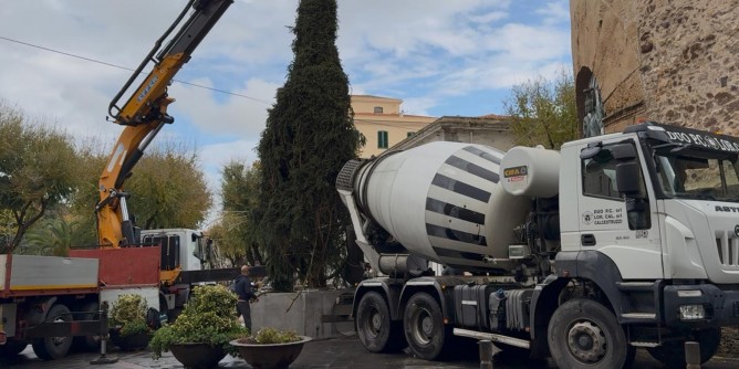In Piazza Porta Terra si installa un grande albero tradizionale dopo anni di installazioni creative. L’abete arriva direttamente dal nord Italia, tra gli esemplari destinati ad essere tagliati per garantire la sicurezza nelle strisce tagliafuoco all’interno di aree boschive. Le immagini