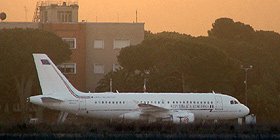 Nella foto l'aereo della Presidenza del Consiglio nella pista dell'aerostazione di Alghero