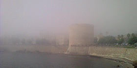 Alghero avvolta da una nebbia fittissima per qualche ora. Dopo le giornate infuocate di mercoledì e giovedì, la temperatura dovrebbe attestarsi su valori medi per la stagione