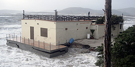Le mareggiate e il vento hanno causato danni ai locali sul litorale. Tra tutti, Il Ginepro, ha avuto la peggio. La violenza dell'acqua ha causato lo smottamento dalle fondamenta e fatto saltare le condotte fognarie