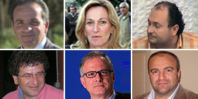 Nella foto (da sinistra): Carmelo Piras (Pd), Alessandra Giudici (candidata presidente Centro-sinistra), Andrea Paulesu (Pdl), Salvatore Marino (Sinistra Unita), Mariano Mameli (candidato presidente Centro-destra), Peppinetto Musu (Pdl).