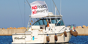 STINTINO - Sono scesi in mare con le loro imbarcazioni, stintinesi, portotorresi, sassaresi e anche turisti venuti a condividere con l’amministrazione comunale di Stintino la protesta, pacifica e dimostrativa, per la vertenza sull’Asinara. E tutti sotto il segno dello slogan della manifestazione “No Parco, No Parti”, con il chiaro riferimento al fatto che se non si entra nel parco non si parte dai porti di Stintino. Una vertenza non certo con il comune di Porto Torres e suoi cittadini «da sempre considerati cugini degli stintinesi» ma con il Ministero dell’Ambiente e la Regione Sardegna dai quali l’amministrazione comunale stintinese attende ancora una risposta, «un intervento – ha detto il sindaco Antonio Diana – per porre rimedio a un’ingiustizia che ha come peccato originale l’esproprio del 1885».