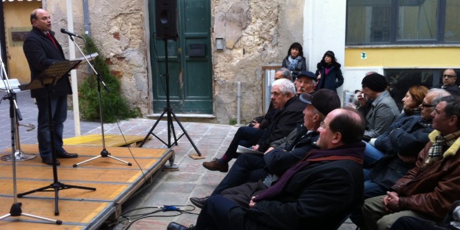 Nicola Sanna, candidato alle primarie di centrosinistra per la carica di sindaco ha incontrato i cittadini nel primo dei quattro incontri che si terranno in piazza Nazario Sauro