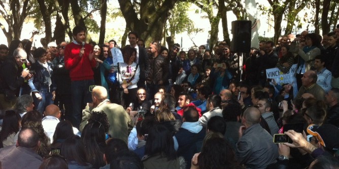 «Un paese funziona quando le istituzioni temono i cittadini e non viceversa. Bisogna ricordare ai politici che sono nostri dipendenti» ha detto Di Battista. Sulle prossime elezioni europee il deputato ha anche affermato che «dobbiamo portare il messaggio di un popolo sovrano. Dobbiamo informare la gente su molti temi, andremo casa per casa. Siamo sulla strada giusta». Dopo il deputato anche Emanuela Corda: «Siamo arrivati a livelli di disoccupazione molto preoccupanti ma per fortuna c’è anche voglia di reagire. Il Movimento cinque stelle è nato per dare la possibilità di esprimere la propria voce. Siamo stanchi di subire».