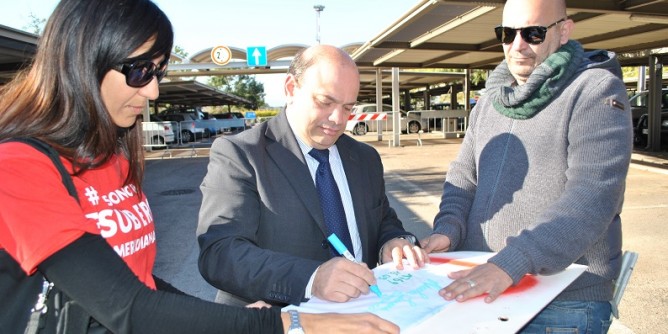 «In considerazione dell'importanza di questo servizio – ha detto ancora Nicola Sanna – della necessità di mantenerlo vivo, anche per incrementare i collegamenti e facilitare gli arrivi nella nostra isola, ritengo sia importante unire i due aeroporti anche attraverso una rete ferroviaria. Ecco allora la solidarietà di Sassari che vuole crescere assieme alla Sardegna per essere aperta all'Europa e al mondo». Il sindaco di Olbia, Giovanni Giovannelli, ha ribadito ai lavoratori la solidarietà dell'amministrazione gallurese e si è augurato che «Il'intervento della Regione sia di impulso per la presentazione di un piano industriale credibile e che dia chiarezza». I due sindaci, quindi, prima di salutare i lavoratori hanno autografato lo striscione che i lavoratori hanno appeso alla torre faro dell'aeroporto Costa Smeralda.