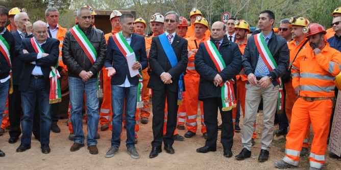 OLMEDO - «L'appello che rivolgo è quello di un intervento che permetta di mantenere in piena attività questo sito». Lo ha detto questa mattina (giovedì) il sindaco di Sassari Nicola Sanna, intervenuto alla seduta consiliare aperta del Comune di Olmedo che si è svolta all'ingresso della miniera di bauxite, alle porte del paese ai piedi del Monte Rosso, con la partecipazione di numerosi sindaci del territorio [LEGGI]. «Questa bauxite – ha detto il primo cittadino – è particolare, con suoi specifici pregi, certo è costoso estrarla dalle viscere della terra. Ma se sino a ieri non c'era  nessuna difficoltà, considerando che non ci sono crisi di mercato, è difficile comprendere scelte aziendalistiche che nulla hanno a che vedere con gli impegni presi. Allora – ha proseguito –, dobbiamo difendere il territorio e chiediamo con forza un intervento perché si possa riprendere l'attività produttiva e la messa in sicurezza. La Regione ha ancora un ente minerario attivo attraverso il quale intervenire in attesa che si trovi un soggetto nuovo che subentri, indispensabile perché non si creino danni e perché si mantengano i livelli di sicurezza del sito».