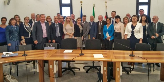 La delegazione bielorussa è stata accolta nel palazzo di Viale Trento dagli assessori regionali Raffaele Paci e Maria Grazia Piras